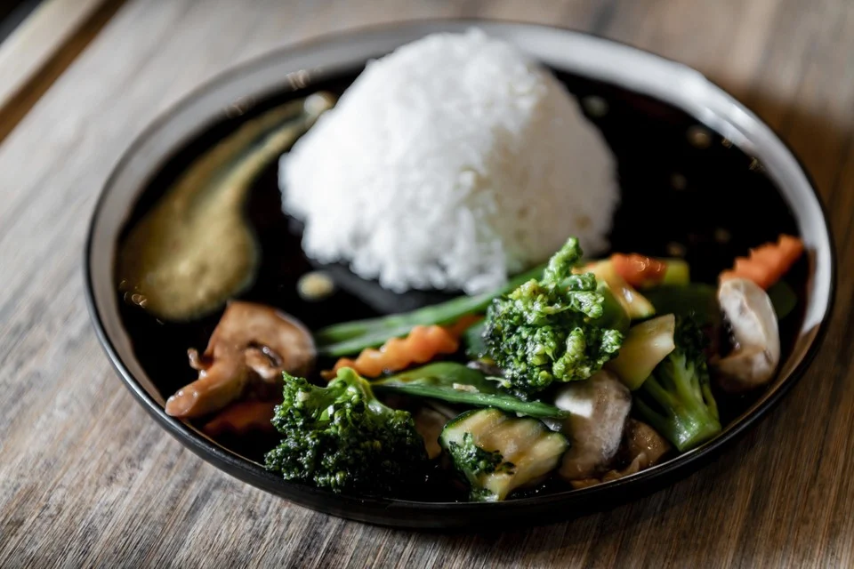 Hetzelfde geldt voor de groenten die gesneden moeten worden voor de andere gerechten, zoals Tom Yam Ta-Lay, een zeevruchtensoep, de kip met rode curry Kang kai nor-mai dong en het bijgerecht Pad Pak.