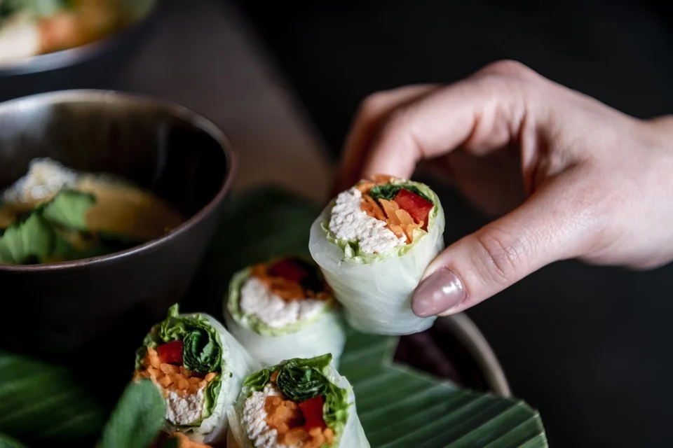 Eerste opdracht: ongefrituurde loempiaatjes van rijstvellen als hapje. (Foto: Boumediene Belbachir)